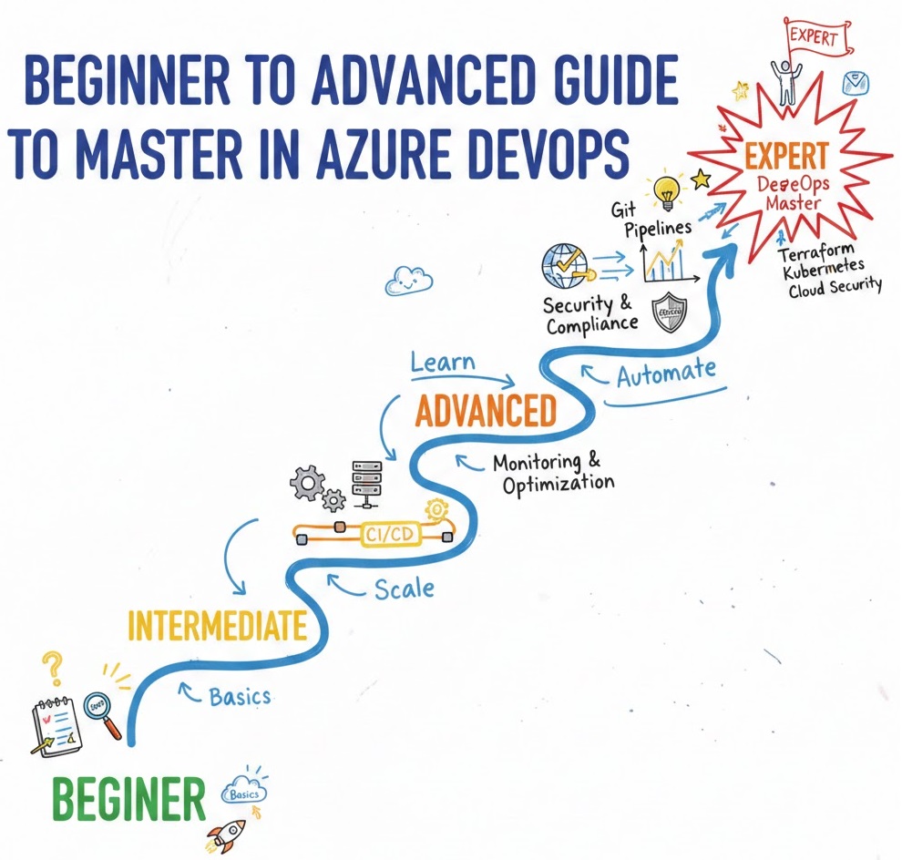 The Master in Azure DevOps certification is designed to help professionals dive deep into the world of Azure DevOps, focusing on automating the software delivery pipeline and cloud-based infrastructure management. It covers everything from version control, continuous integration (CI), and continuous delivery (CD) pipelines, to release management, automated testing, and monitoring.