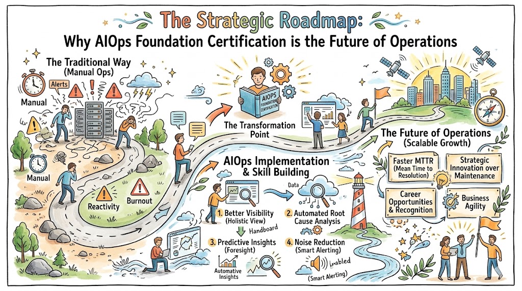 The end of manual monitoring is near. Organizations can no longer afford to have their best engineers buried in a mountain of false-positive alerts. The AIOps Foundation Certification is the key to unlocking a more efficient, reliable, and human-friendly operational environment. By choosing the training paths at AIOps School, you are not just getting a certificate; you are learning how to lead the autonomous revolution.